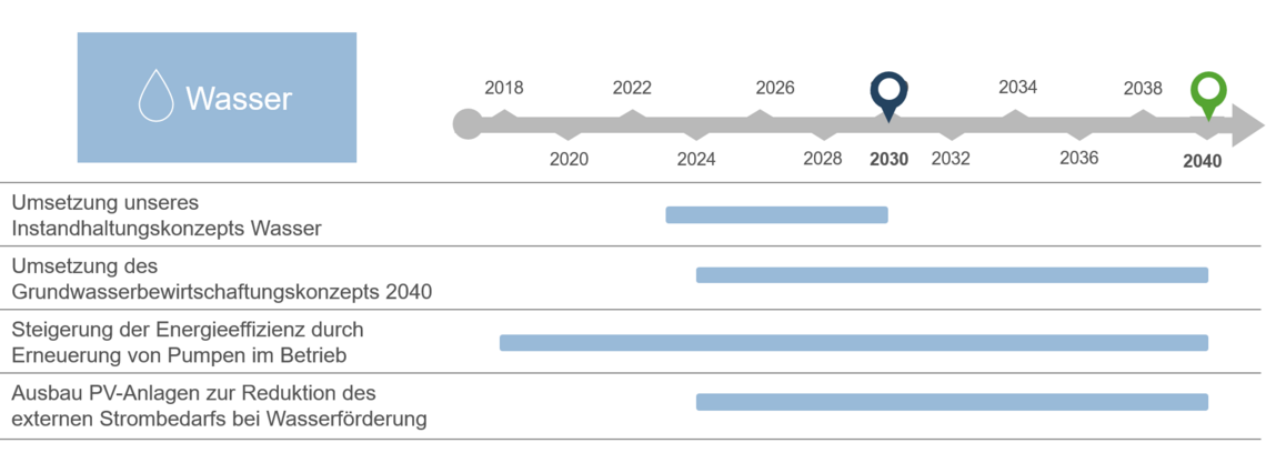Wir versorgen unsere Kundinnen und Kunden mit Trinkwasser aus den Grundwasservorkommen der Region. Diese Wasserförderung soll auch in Zukunft ressourcenschonend, klima- und umweltfreundlich sein.